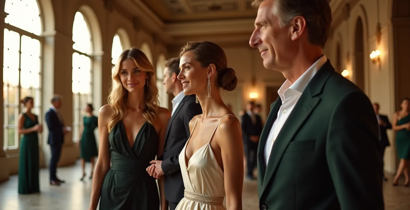 Der Moment, in dem eine Einladung zu einem besonderen gesellschaftlichen Anlass eintrifft – sei es eine Vernissage, ein festlicher Empfang oder ein wichtiges Dinner – bringt oft eine Mischung aus Vorfreude und subtilem Stress mit sich. Die zentrale Frage lautet: Was ziehe ich an? Dahinter verbirgt sich eine tiefere Unsicherheit, die viele gesellschaftlich aktive Menschen kennen. Man möchte weder altbacken und aus der Zeit gefallen wirken noch als „Fashion Victim“ erscheinen, das jedem flüchtigen Trend hinterherjagt. Die üblichen Ratschläge, in Klassiker zu investieren oder den Look mit Accessoires aufzuwerten, greifen oft zu kurz. Sie beantworten nicht die Kernfrage, wie man eine Brücke zwischen dem Bewährten und dem Neuen schlägt.