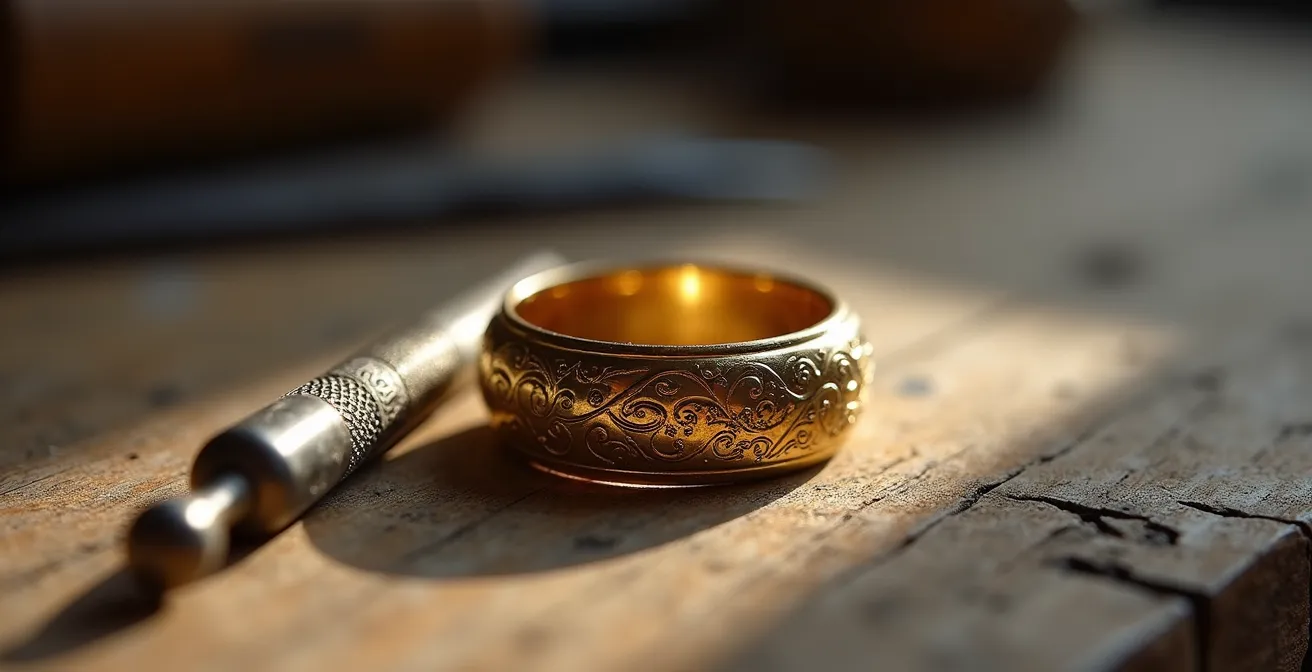 Nachdem Sie den Kern Ihrer Geschichte definiert haben, stehen Sie vor der Frage, wie Sie diese am besten sichtbar machen. Gravur, Symbolik und Edelsteine sind die drei primären Sprachen, um eine Erzählung in Metall und Stein zu fassen. Jede hat ihre eigene Stärke und emotionale Wirkung. Die Wahl hängt davon ab, wie intim, subtil oder kühn Ihre Botschaft sein soll.
